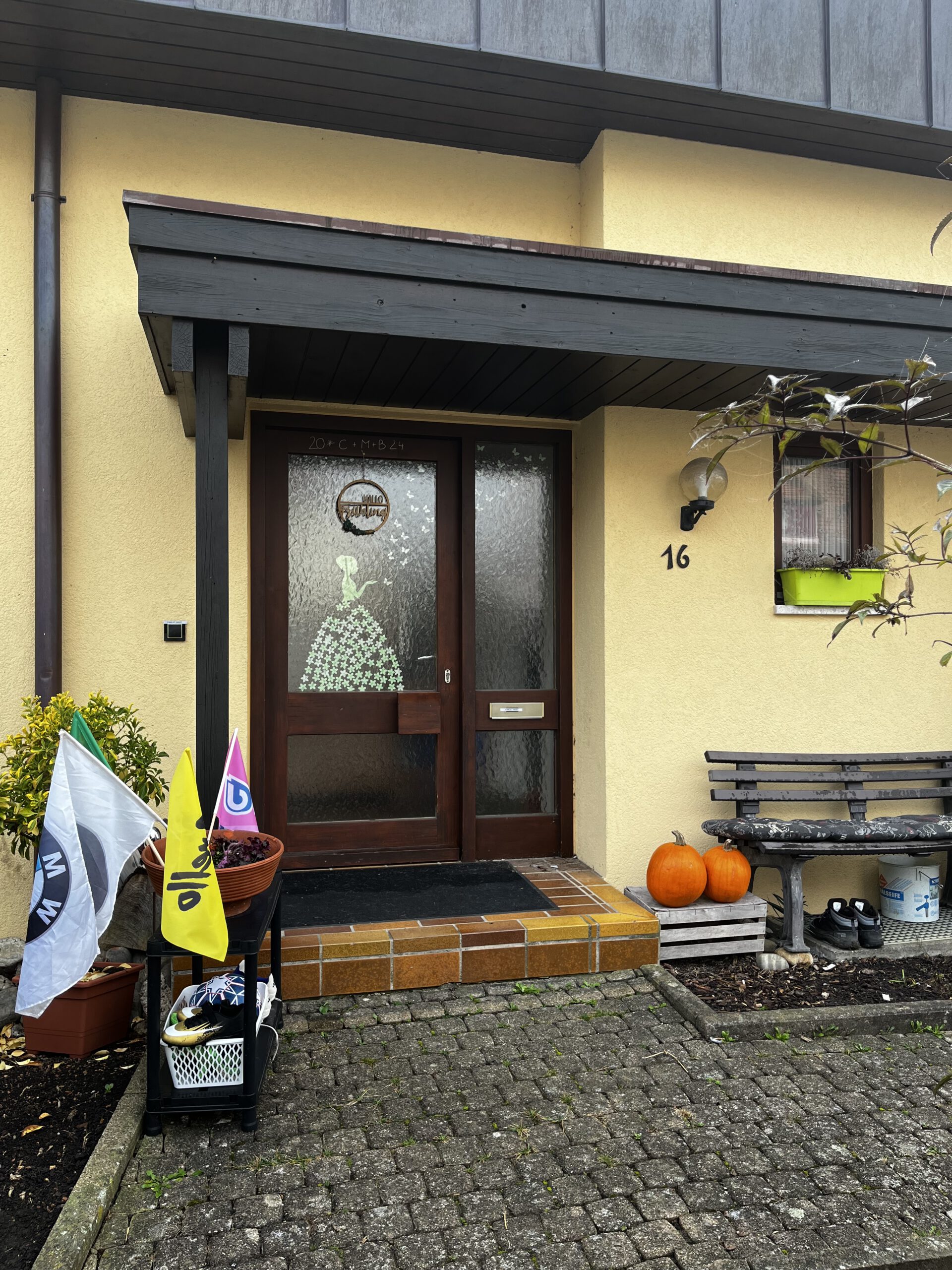 Montageart: Direkt an das Wohnhaus gebaut – auf 4 Pfosten wegen des vorhandenen Vollwärmeschutzes