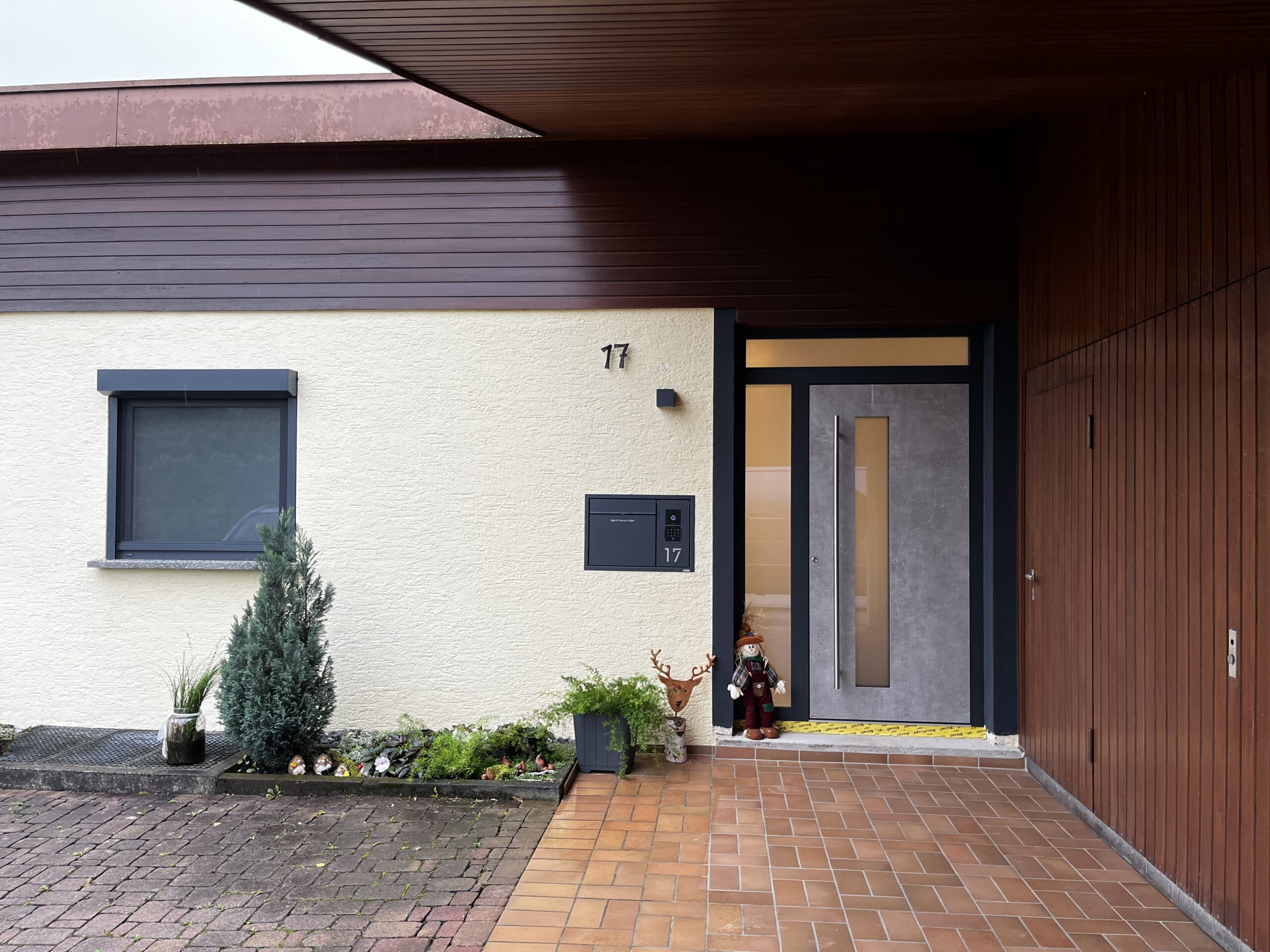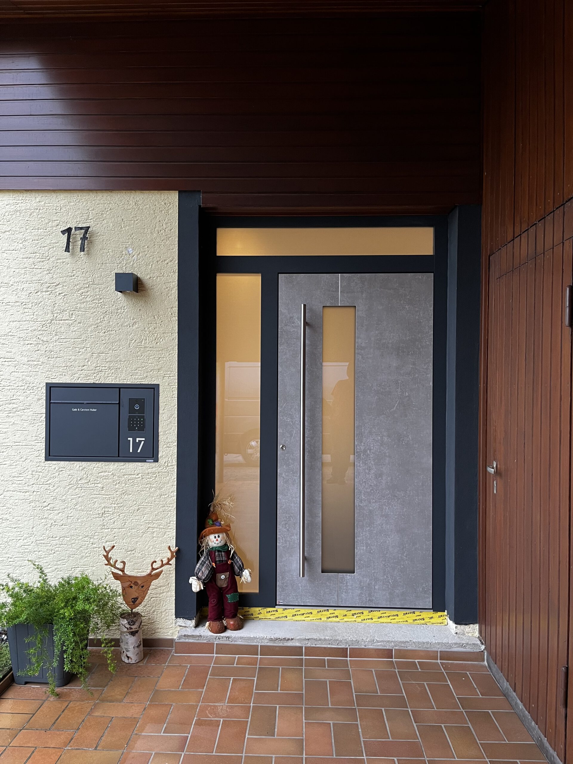 Auch bei diesem Bauvorhaben wurde eine Haustür mit hochwertiger Keramikoberfläche verbaut. Der Aluminiumrahmen sorgt für Stabilität und Langlebigkeit, während die Keramikfüllung durch ihre edle Optik und außergewöhnliche Widerstandsfähigkeit überzeugt. Die Oberfläche ist kratzfest, witterungsbeständig und farbecht, was sie besonders pflegeleicht und langlebig macht.